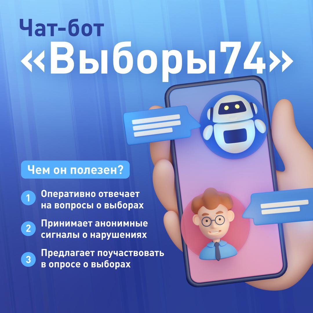 Начните общение с чат-ботом по ссылке https://t.me/Elections74_bot
