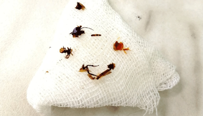 «Во время осмотра лора (оториноларингологом) были обнаружены посторонние объекты в левом ухе ребенка. Находкой оказались остатки уже высохшего таракана. К счастью, обошлось без печальных последствий. Поставленный ранее диагноз не подтвердился», – прокомментировали в ДГКБ № 8.