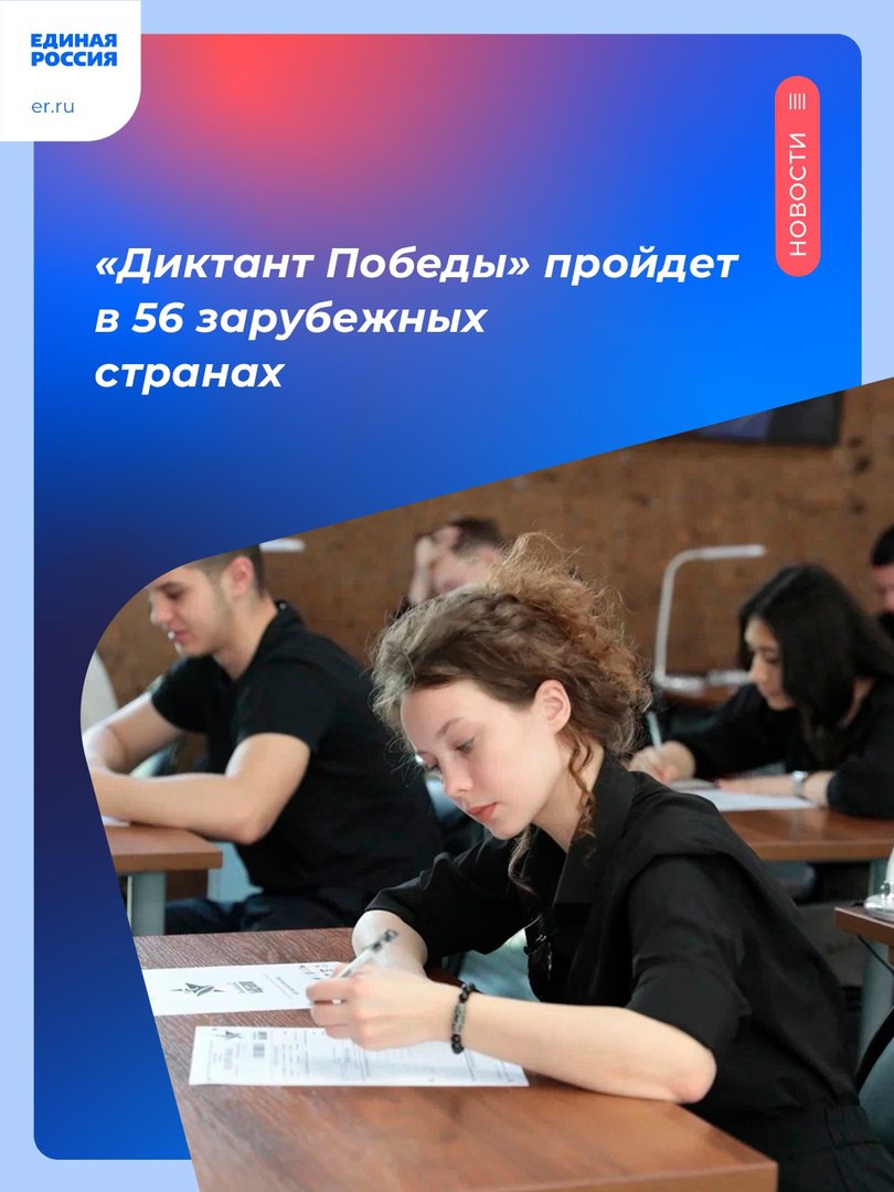 Международная историческая акция «Единой России» «Диктант Победы» пройдет 26 апреля в 56 зарубежных странах.