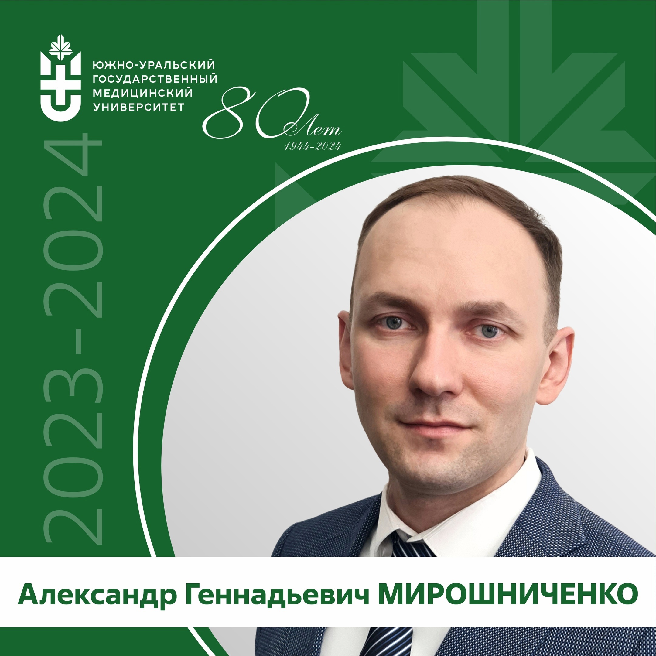 Мы продолжаем проект «ЮУГМУ_История в лицах», который реализуется в рамках юбилейных мероприятий, посвященных 80-летию нашего вуза. В этом выпуске мы рады представить вам доктора медицинских наук, доцента Александра Геннадьевича Мирошниченко.