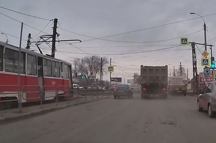 Большегруз обогнал легковушку на перекрестке. Нарушителя помогли установить кадры с видеорегистратора.