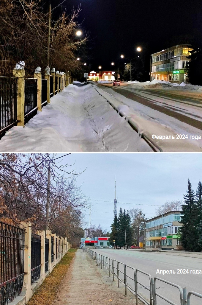 Всего два месяца назад здесь было совсем иначе. Узенькая тропка по снежным валам. Пешеходы, еле перебирая ногами, шли по сугробам, возвышаясь над дорогой.